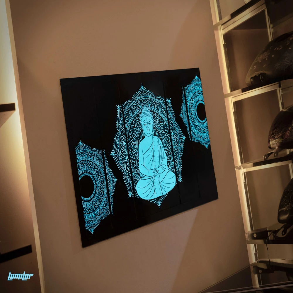 Create an ultra-tranquil and serene environment in your home or office space with LumiLor Buddha Wall Decoration Frame. This masterpiece is going to give you and the ones around you immense positivity and energy to carry out your business with ease. Available in Aqua color, this Buddha Painting is sized at 31 inches x 19 inches.